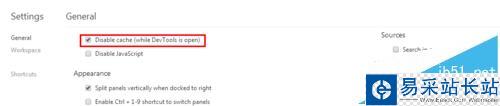 6、接下來我們就要設置了,我們在【Disable cache...】前面打勾,就是把這一項選上,這個選項的意思就是,當調試工具打開時禁止瀏覽器緩存