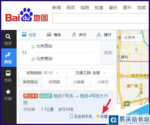 6、可以看到具體路線,點(diǎn)擊路線右下方的收藏五角星