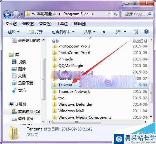 3、接著在打開的文件夾中找到Tencent的文件夾,這個文件夾就是qq瀏覽器的默認安裝位置。它的qq一樣都是安裝到這個文件夾中的。