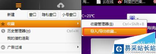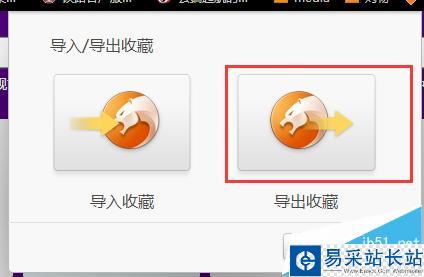 3、鼠標(biāo)移動(dòng)至收藏的時(shí)候,選擇導(dǎo)入/導(dǎo)出收藏,點(diǎn)擊導(dǎo)出收藏。
