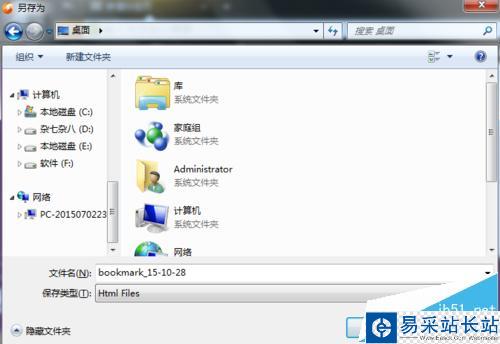 4、選擇導(dǎo)出收藏的目標(biāo)位置,命名,保存。