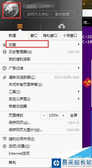 2、點(diǎn)擊左上角的獵豹的圖標(biāo),選擇收藏。