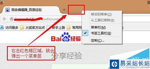 3、選擇菜單欄。我們發現菜單欄出現了再瀏覽器的左邊頂部。