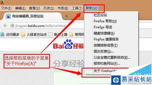 4、選擇菜單欄里面的幫助菜單。然后就能看到關于Firefox子菜單。
