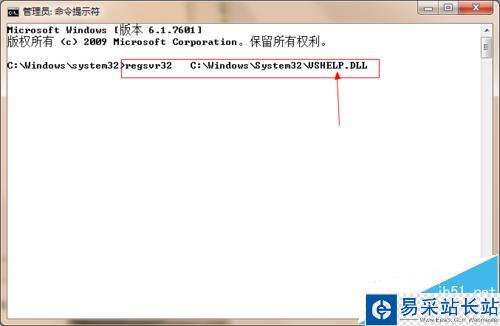 3、在打開的命令提示符中輸入加載dll的代碼,如圖所示。