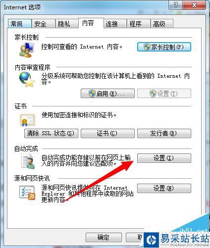 4、進入”內容界面“,在【自動完成】選項點擊后方【設置】