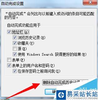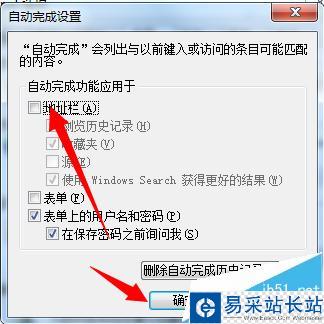 7、然后返回自動完成界面,將【地址欄】選項前方勾取消,然后點擊確定