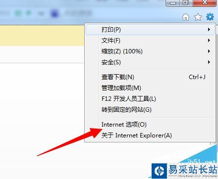 2、在彈出的菜單欄中選擇【Internet選項】選項