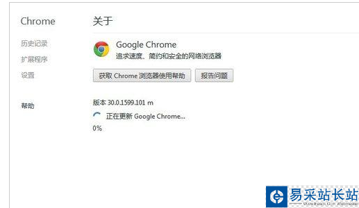 6、重啟電腦,打開Google Chrome瀏覽器。點擊“關于Google Chrome”,查看更新。