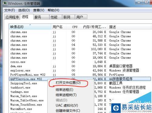 3、右鍵點擊QQPYService.exe,選擇“打開文件位置”,