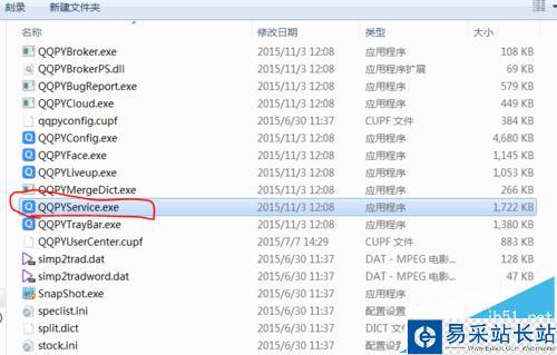 4、來到程序目錄,找到QQPYService.exe文件,右鍵點擊它,選擇 刪除。