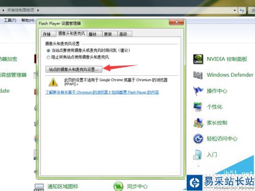 4、在彈出Flash Player的設置管理器之后,在上面的一排菜單之中選擇攝像頭和麥克風選項。