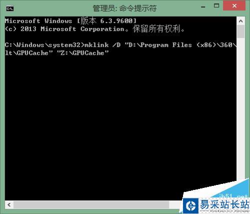 mklink /D "D:/Program Files (x86)/360/360se6/User Data/Default/GPUCache" "Z:/GPUCache",然后回車。這句命令的意思是建立一個硬鏈接,將360瀏覽器的GPU緩存目錄鏈接到Z盤的GPUCache目錄。