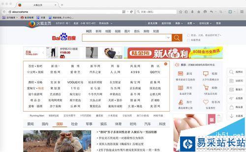 1、首先在電腦上打開火狐瀏覽器Mac版,如下圖所示,進入默認頁面。