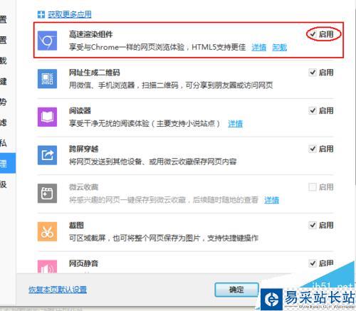 5、點擊安裝“高速渲染組件”并啟用,最后選擇“應用”;