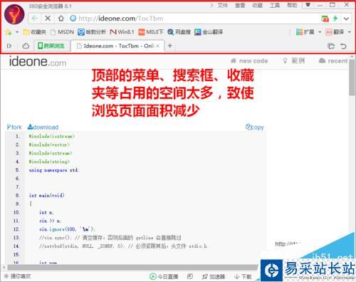 2、其最主要的一點就是頂部的菜單欄、地址欄、搜索框和收藏夾等占用了大量的空間,相比Chrome的簡潔風而言顯得有點雜亂,而且占用了不少瀏覽頁面空間。