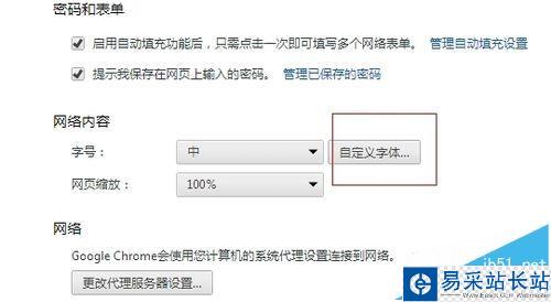 4、找到“網絡內容”一欄中的“自定義字體”,點擊進入。