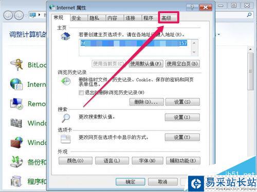 2、在“Internet 選項(xiàng)”屬性窗口,選擇“高級”這個(gè)選項(xiàng)卡。