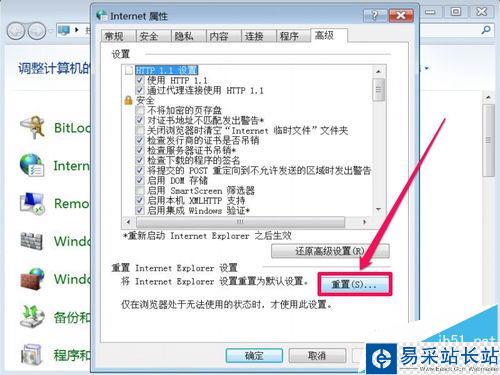 1、如果用了上面方法,還沒有修復(fù)好,還在“高級”界面,點(diǎn)擊“重置”按鈕。