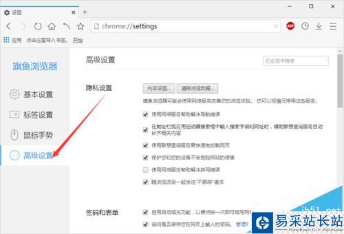5、在“設置”對話框中,選擇左側窗格的“高級設置”選項卡。如圖所示;