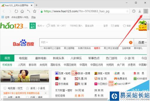2、在打開的瀏覽器界面,點擊右上角的“菜單圖標”按鈕。如圖所示;