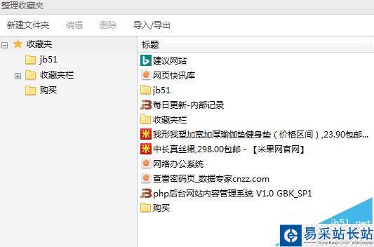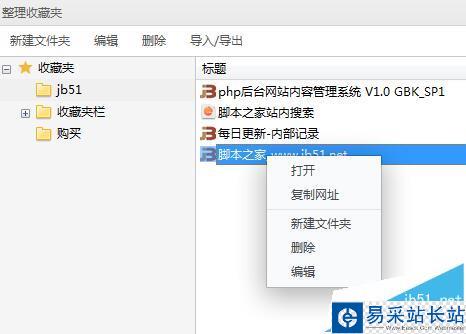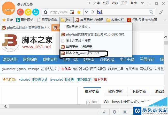 3、點擊以后提示收藏到哪個文件夾中,小編就收藏到jb51文件夾中,收藏好了以后,點擊jb51文件夾就可以看到自己收藏的網頁,如下圖所示。
