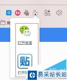 3、安卓好后,在插件欄就可以看到一只兔子一樣的圖標,點擊它可以讓你選擇微信打開還是貼吧打開