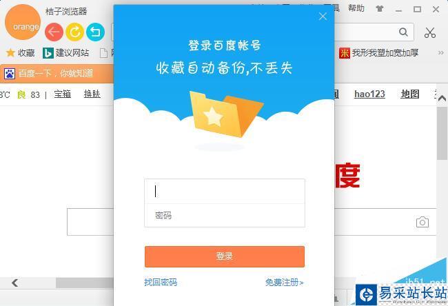 安裝桔子瀏覽器發現收藏的東西沒辦法同步更新,這是因為沒有登錄帳號,該怎么注冊帳號并登錄呢?請看下文詳細教程。