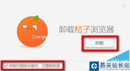 4、此時選擇卸載時刪除收藏夾、設置數據,然后點擊卸載,最后桔子瀏覽器就卸載成功了。