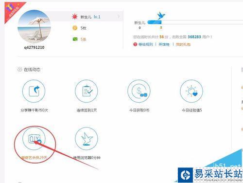 5、進入個人中心可以看到你賬號下可以使用愛奇藝會員的天數,點擊進入。我們根據自己的千影幣換取自己需要兌換的。如圖所示