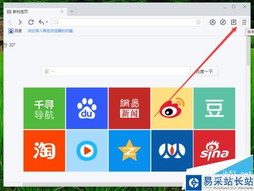 2、在打開(kāi)的瀏覽器界面,點(diǎn)擊右上角的“三橫”圖標(biāo)按鈕。如圖所示;