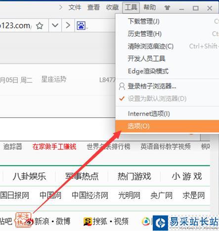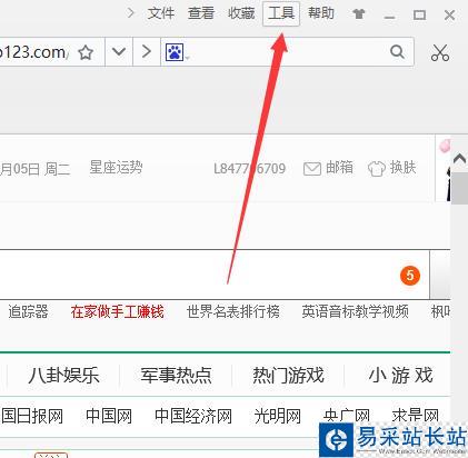 2、在打開的瀏覽器界面,點(diǎn)擊菜單欄上的“工具”選項(xiàng)。如圖所示;