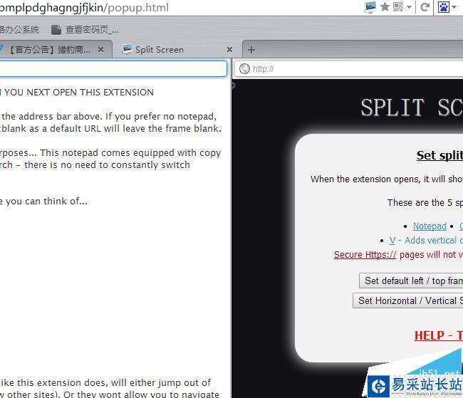 5、安裝成功以后在URL欄中可以看到一個分屏圖片,點擊就可以分屏顯示了,如下圖所示。