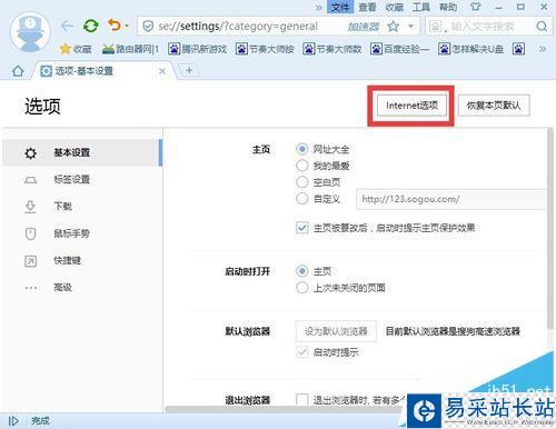 1、打開“Internet選項”界面:在IE瀏覽器中,直接點擊“工具”-“Internet選項”項來打開,針對其它瀏覽器,則需要在“瀏覽器設置”界面中,點擊“Internet選項”按鈕來打開。