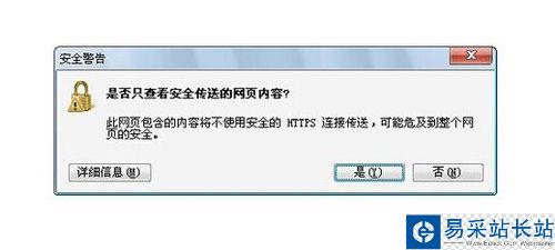 3、在瀏覽網頁過程中,如圖所示彈出如圖所示的“是否只查看安全傳送的網站內容”窗口中,點擊“是”按鈕將只查看經安全傳送的內容,如果點擊“否”則顯示所有網頁內容,包括未經安全認證的內容。