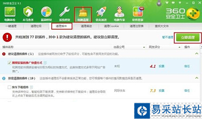 除此之外,也可能是由于一些流氓插件或其他不插件導致FlashPlayer異常的,可以使用360安全衛士清除惡意插件。