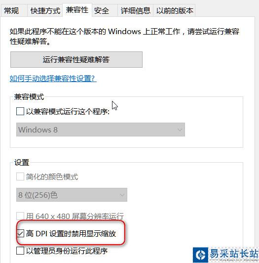 3、在“兼容性”里面勾選“高DPI設置時禁用顯示縮放”
