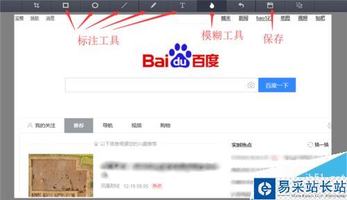 截圖完成后,可以使用最上面的矩形、圓形區域、模糊工具、直線、鉛筆等工具進行圈點批注,最后點擊保存即可。