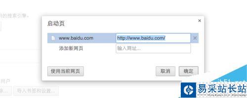 接著再點擊【設置網頁】選項,設定自己想在打開 Chrome 瀏覽器時所打開的頁面地址。