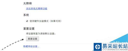 此外如果經過上面的操作以后,有時候可能還是會解決不了問題,此時請繼續回到 Chrome 瀏覽器的設置頁面中,在底部找到【重置設置】選項,點擊它繼續。