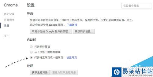 隨后在 Chrome 瀏覽器的設置頁面列表中,有一個【啟動時】欄目,在默認情況下它的選項應該是“打開新標簽頁”一欄選項。如果當前主頁被篡改以后,請重新選擇這一欄選項即可恢復。