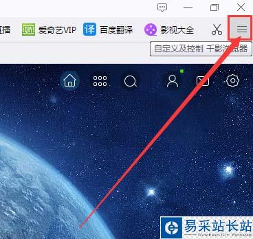 2、點擊瀏覽器右上角關閉按鈕下面的"自定義"圖標