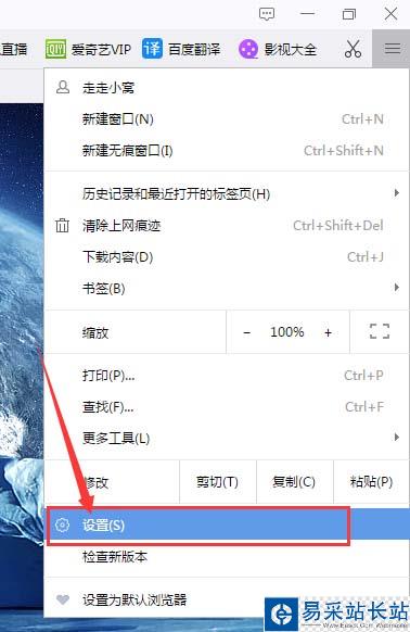 3、在展開的菜單中選擇“設置”,這時會跳轉到設置頁面中
