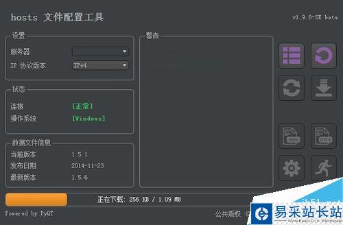 將下載到電腦中的“Hosts文件配置工具”解壓并運行“hoststool_tui.exe”程序即可。從彈出的程序主界面中,選擇其中一種能夠正常訪問的服務(wù)器后,點擊“檢查更新/刷新”按鈕,以獲得最版本的程序。