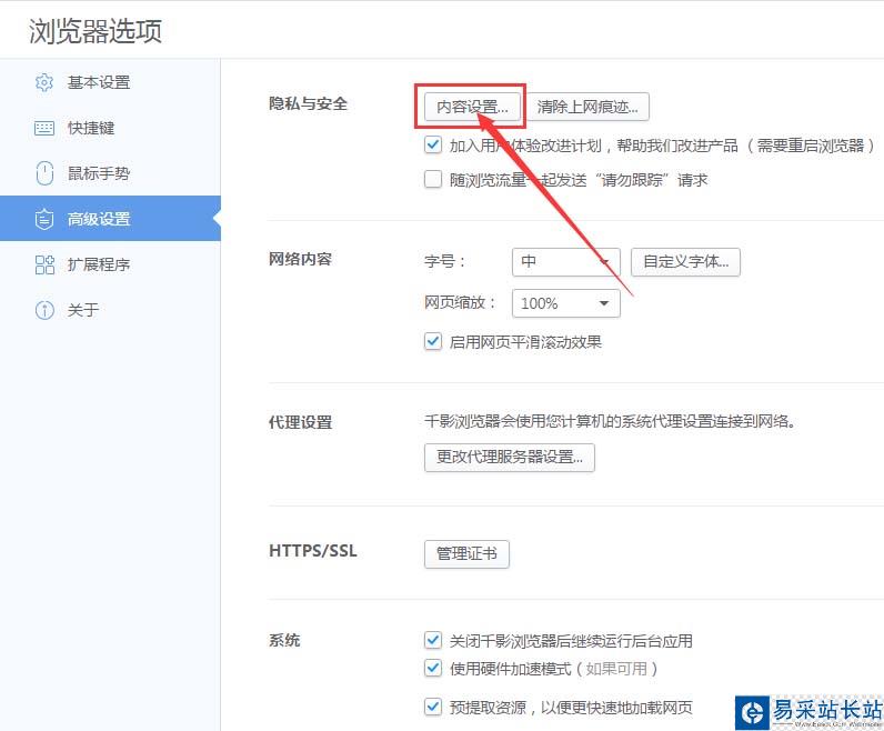 5、在高級設置中看到【隱私與安全】中的【內容設置】點擊進入