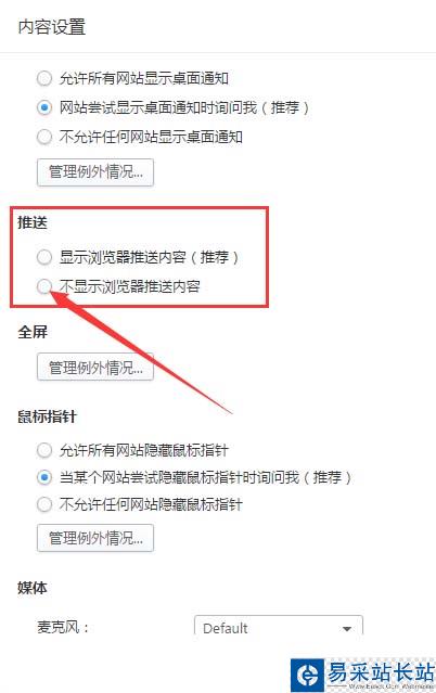 6、跳出內容設置界面滾動往下拉找到【推送】中【不顯示推送內容】前面加點后點擊【完成】