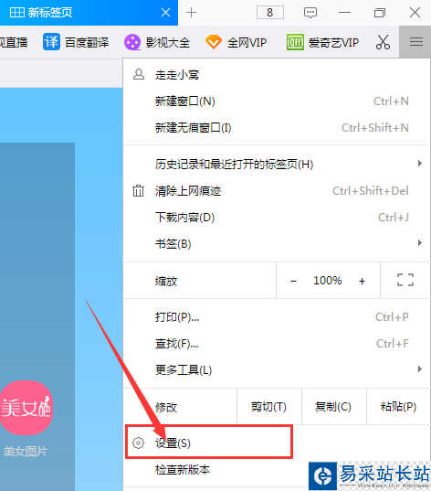 2、在瀏覽器右上角點擊三橫杠自定義菜單