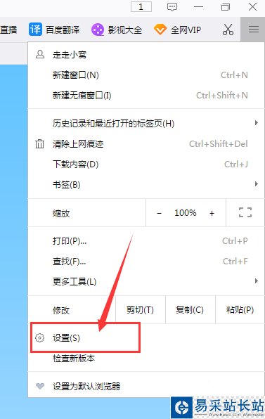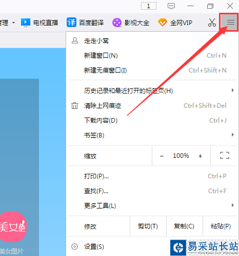 2、點擊瀏覽器右上角三橫杠的自定義菜單