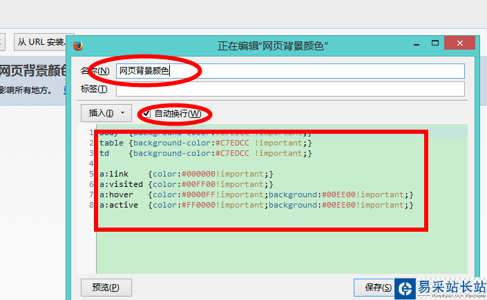 5、在出現的對話框中,在名稱中輸入你想要的樣式名稱,自動換行也可勾選,在下面插入的地方插入