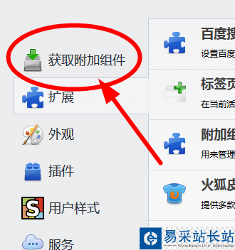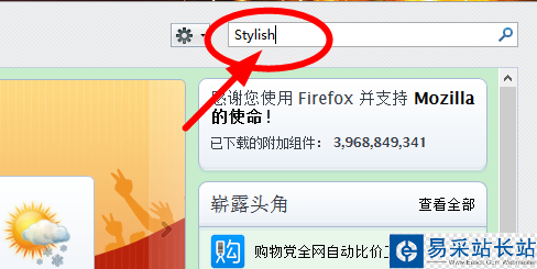 2、點擊獲取附加組件,并在出現的網頁的搜索欄中輸入Stylish,并搜索